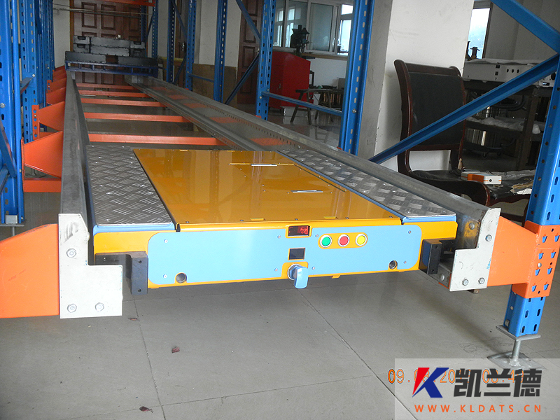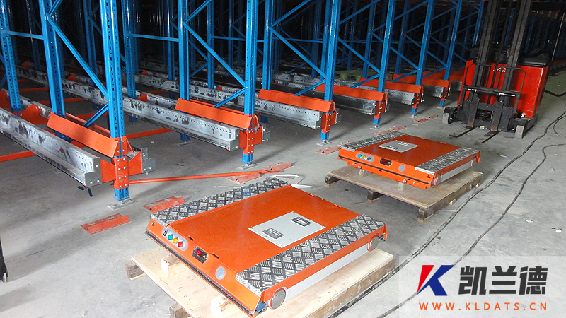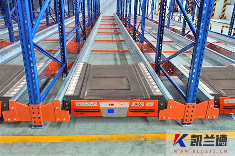 結構特點:主要由貨架部分、穿梭車及叉車三個部分構成。穿梭車可以自行將托盤提升并沿著貨架巷道內的軌道運行,將貨物從入口處運送到巷道里面或者從巷道里面運送到出口處。